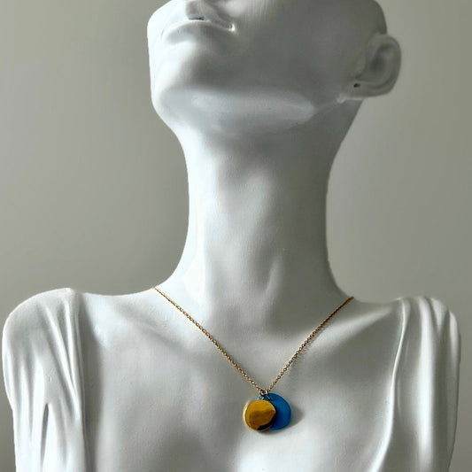 GOLD DISC + TURQUOISE DOUBLE PENDANT NECKLACE