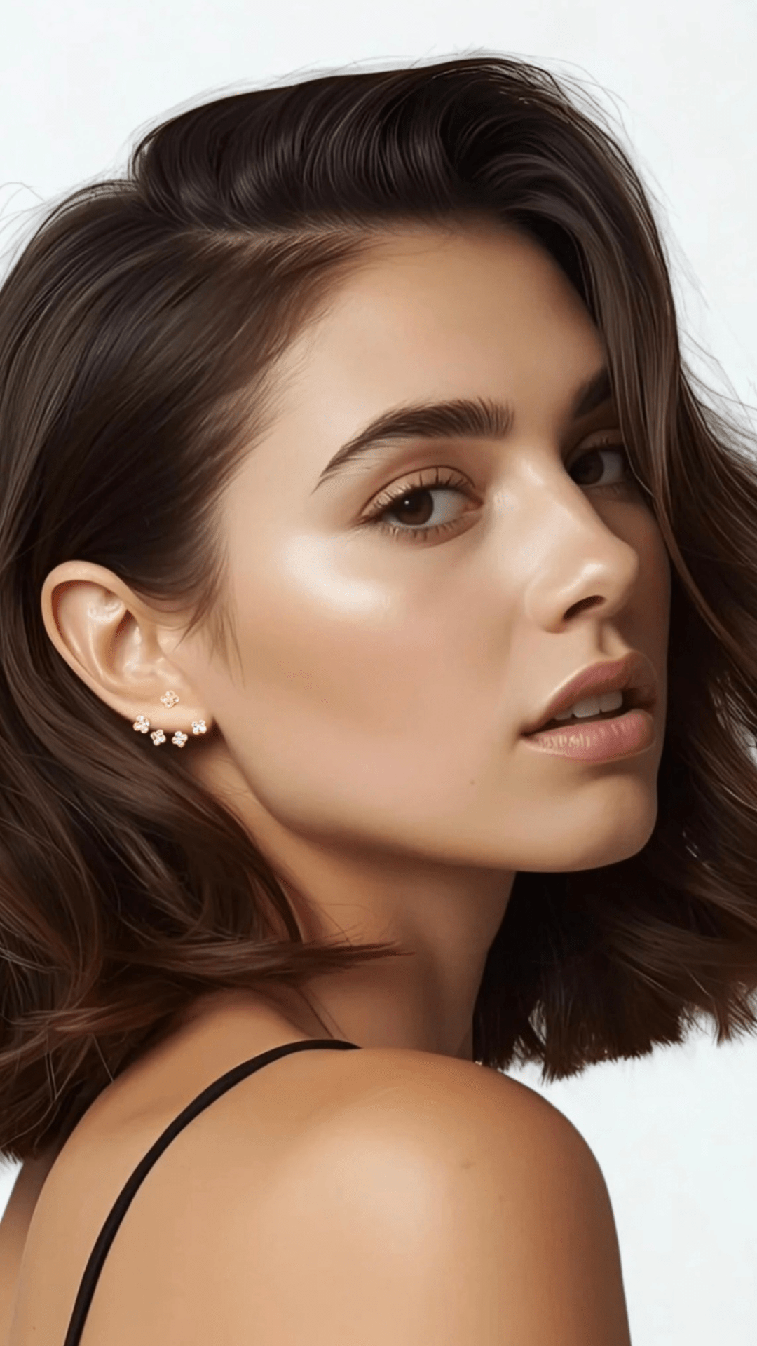 Our unique wraparound design has a piece which connects from behind, and wraps around to the front of the ear, resulting in a unique floating look.